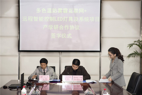 Through friendly negotiation meeting between the two sides, Chongqing economic construction (Group) Co. Ltd and Chongqing Green Technology Development Co. Ltd. and Chongqing real estate Career Academy, the spirit of "sincere cooperation, pragmatic, mutual benefit and common development" principle, to reach agreement on a research base for cooperation, project development and application of new technologies. Leaders on both sides have witnessed by all participants in the applause, the two sides signed a multi color temperature anti haze Internet plus remote intelligent control system and research cooperation agreement LED lighting project.